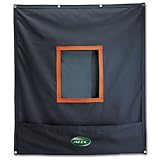Screen is pretty heavy so you'll need two people to hang properly. On bad weather days, it hangs in the garage from the garage door framing and they can still practice pitching. You'll need to purchase your own bungy cords.Get more detail about ATEC Pro Pitcher's Practice Screen.