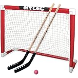 This goal was easy to set up and light enough for my 8 yr. old to move around. The goal breaks down for easy storage. The sticks and ball were nice extras.Get more detail about