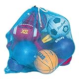 I use this to carry light weight physical therapy equipment and it is great. It is large enough for big plastic rings, spot markers, and several playground balls. It keeps the equipment from scattering around my vehicle as I drive and the kids with whom I work love helping me open, close, empty, and fill the bag.Get more detail about SSG Heavy Duty Mesh Equipment Bag.
